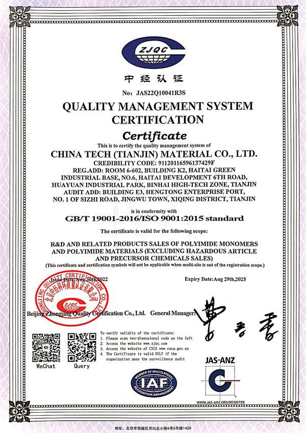 天津眾泰材料科技有限公司(以下簡稱“眾泰”),是一家“以先進功能性聚酰亞胺單體研發(fā)生產(chǎn)為核心,致力于推動全球聚酰亞胺材料產(chǎn)業(yè)發(fā)展”為使命的創(chuàng)新型高新技術(shù)企業(yè)。眾泰研制的聚酰亞胺單體目前已廣泛應(yīng)用于無色透明柔性聚酰亞胺薄膜、柔性顯示材料、5G新材料等諸多高科技領(lǐng)域產(chǎn)品的生產(chǎn)。